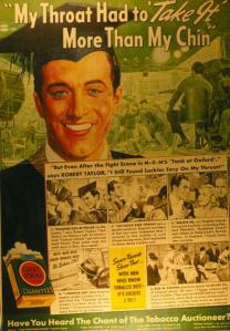 “But even after the fight scene in M-G-M’s Yank at Oxford,says Robert Taylor, “I still found Luckies easy on my throat.”