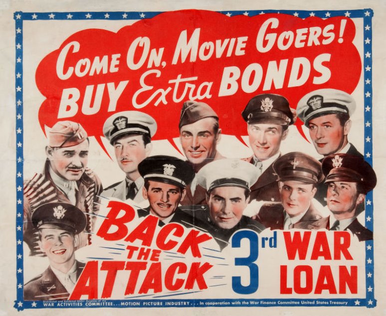 Let’s end on a positive note with this public service announcement from the early 1940s. I’m sure Robert Taylor and the others were happy to lend their support to such a good cause. From left to right: Ronald Reagan, Clark Gable, Robert Taylor, Douglas Fairbanks, Jr., Alan Ladd, Tyrone Power, Jimmy Stewart, Robert Sterling, Robert Montgomery, Robert Young.