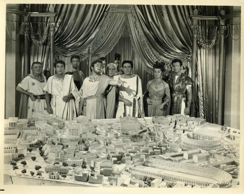 In the first place, although there is no record of exactly what kind of music the ancient Romans enjoyed, the tunes used in the production are believed to be as nearly authentic as possible. The song that Nero sings during the burning of Rome, and the hymn the Christians chant as they are martyred, are most likely a close approximation of the real thing. At least Dr. Rosza doesn’t think they differ more than a few notes from the compositions sung by the emperor and his people.