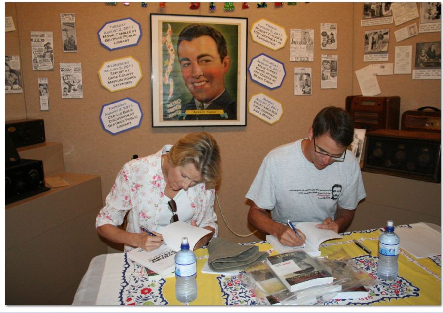 The adult Tessa and Terry are autographing books at the celebration of Robert Taylor’s 100th birthday in Beatrice, Nebraska in 2011. Terry was 14 and Tessa 9 when they lost their father. Both have fond memories of him and both have worked to keep the memory of their father’s legacy alive. I suspect that they are pleased with the revival of interest in Mr. Taylor in the last few years. Two very good biographies have appeared, Robert Taylor movies are available through Warner Archive and You Tube, he has been Turner Classic Movies’ star of the month twice. Linda Alexander’s book has led to a re-evaluation of Mr. Taylor and the controversial HUAC (House un-American Activities Committee) hearings in 1947.