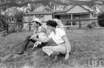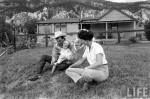 Robert Taylor, Ursula Thiess, Tessa Taylor and Terry Taylor relax at their home in Wyoming 1961. In 1963 the owner of the land, Clarence Tarbet, died and the land become a state park. The Taylors were not warned about this. Mr. Taylor was angry at the discourtesy and left immediately without many of their possessions. (Ursula Thiess, “…but I have promises to keep,” Xlibris Press, 2007, pp. 109-110.)