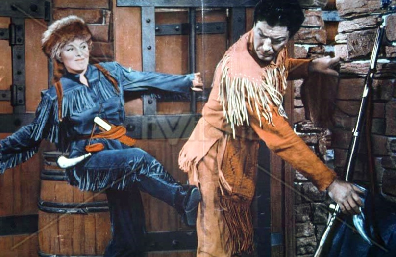 Their last film together, Many Rivers To Cross, is a farce that started out as a drama. Ms. Parker is Mary Stuart Cherne, a Kentucky frontierswoman looking for a man. Robert Taylor is a trapper who is constantly pursued by women. When Ms Parker rescues Mr. Taylor from an Indian attack, she announces that “I found this’un and it’s mine.” (McClelland, page 82). After a shotgun (literally) wedding, Bushrod Gentry (Taylor) takes off and Cherne pursues him. Ms. Parker’s role is extremely physical and she carries it off with zest and vigor. “Parker was Taylor’s favorite leading lady and she complemented him on the screen more than any other actress.” (Wayne, Jane Ellen. Gable’s Women, 1978).