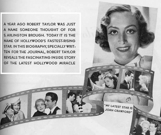 You’d never guess in a million years,” serenely our host taunted us. Among the guests were a Washington correspondent, a New York literary critic, a famous book publisher, a popular short-story writer, two editors—all of whom are supposed to know what the public like and when they like it. We all hated to admit defeat. But no one won the dollar, because no one guessed the name of Robert Taylor. Only three of the people present had, in fact, ever seen him. It made us decide to print his story-which we present herewith as written exclusively for the Journal. Other favorites ran truer to form: Myrna Loy and Claudette Colbert, favorite movie actresses; Wayne King, favorite orchestra leader; Jack Benny, favorite radio comedian. Only Taylor was the surprise—and a new star in the entertainment sky of America. Take it away, Robert Taylor. The Editors