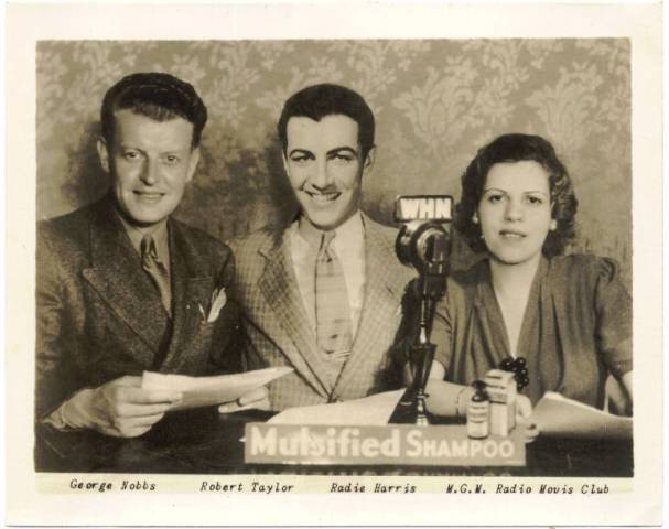 George Nobbs, Robert Taylor and Radie Harris in 1936 on the radio for Mulsified Shampoo.