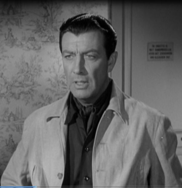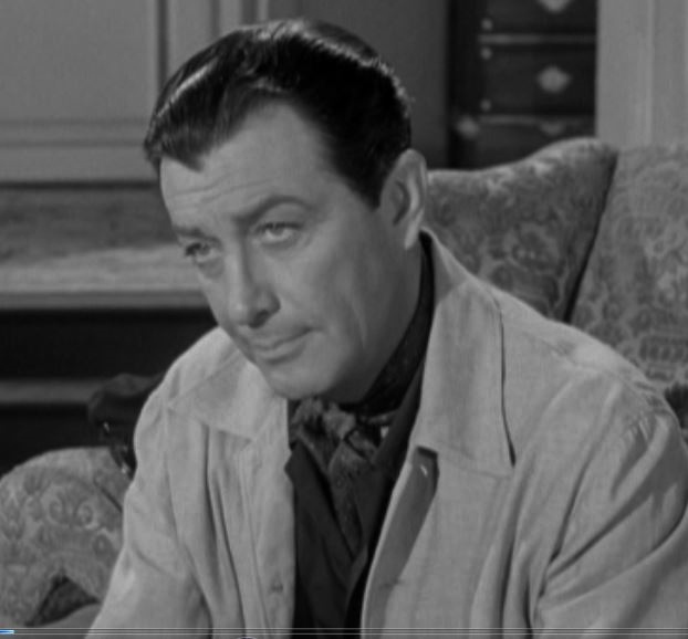 I’m not sure Robert Taylor took this movie terribly seriously. He wears the same costume throughout the film, including an Eisenhower jacket that he had made for himself. He does a little mugging, especially when Nordley is being asked to believe one fantastic lie after another. Far from being wooden, he displays considerable facial flexibility. Mr. Taylor does look as though he’s having fun.