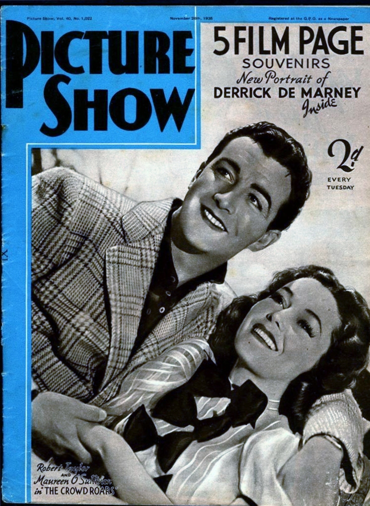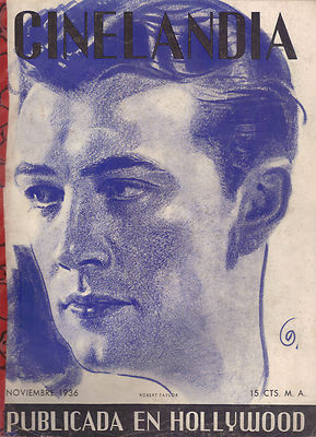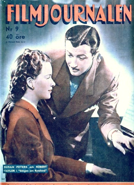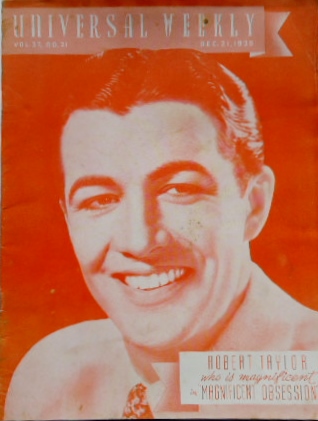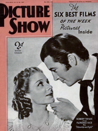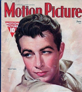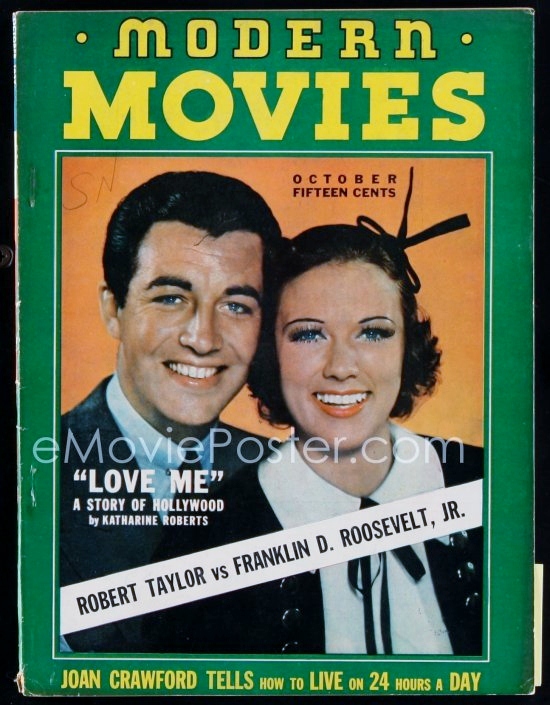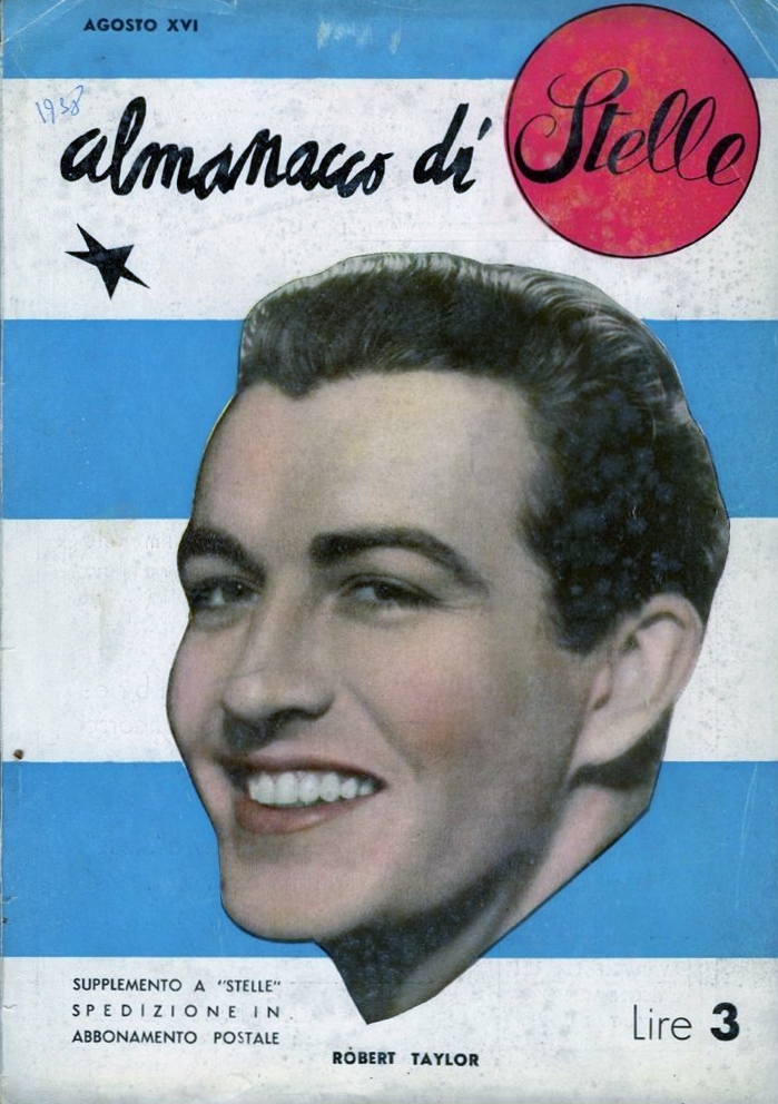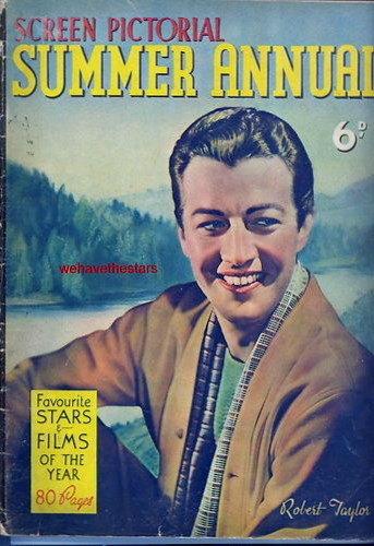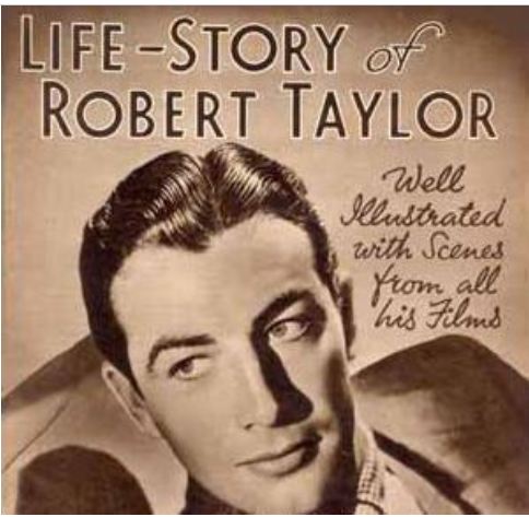 During the 1930’s, Robert Taylor’s face was everywhere. He beamed from every newsstand in black and white and living color. Most of the images were romantic and emphasized his good looks but a few differed. The one from Yugoslavia showing Mr. Taylor drinking coffee, for instance, or the one with his battered face from The Crowd Roars are unusual. He is often featured with his co-stars, most often Jean Harlow in Personal Property or Barbara Stanwyck in This Is My Affair.