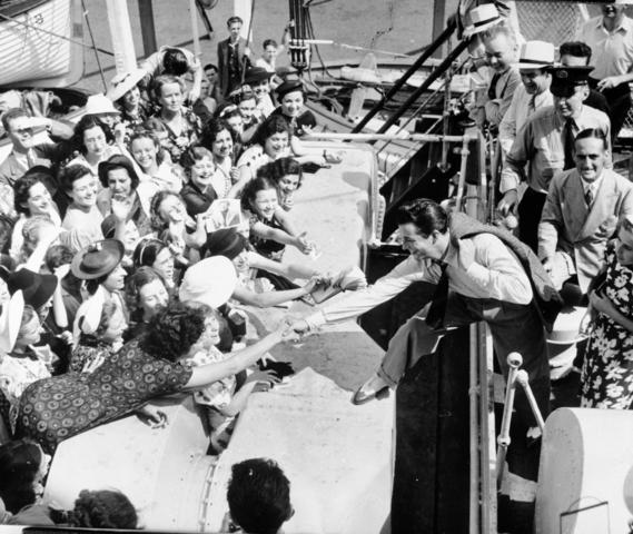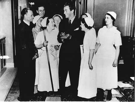 From left: English bobbies trying to hold off adoring fans in London; meeting some English nurses; signing autographs for fans. Robert Taylor was very careful about autographs, only signing “Best Wishes.” He thought that anytime else would seem too intimate. Mr. Taylor also checked underneath the paper he was signing to make sure that there wasn’t something underneath–for instance a piece of carbon paper and a check made out to the fan.