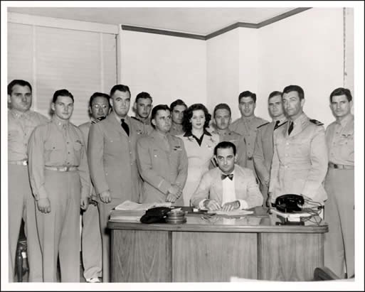 From left: Meeting future President Lyndon Johnson during World War II; Prime Minister Levi Eshkol of Israel and Mrs. Elisheva Eshkol, on the set of The Night Walker, 1964; with a group of men in the mid fifties.