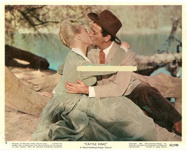 Cattle King is the last film Robert Taylor made under his MGM contract. His full-time contract had ended in 1959 but he agreed to do three more pictures. Cattle King is the third. Mr.Taylor plays a large scale cattle rancher whose living is being threatened by a Texas cartel who want to build a cattle highway from Texas to Canada. This would bring thousands of undesirable cattle to Mr. Taylor’s Wyoming home. It’s a nice twist on the old cattle ranchers vs. sheep herders story. Instead of wanting to leave the range free for cattle to roam, Sam Brassfield (Mr.Taylor) wants to fence in land for the controlled  breeding of high quality bovines. The only sheep herder in the picture ends up siding with Brassfield. The cinematography is outstanding with a pallette that brings out the beauty of the area near Yellowstone Park. There are numerous scenes of groups of people riding which must have looked wonderful on the big screen.