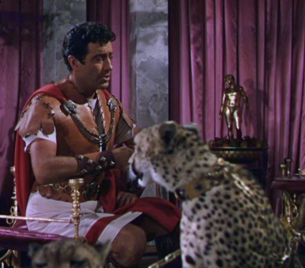 We had to fake the scene. I wound up having the prop men stuff empty clothing with meat, so it looked like a Christian lying on the ground, and we brought the lions out forcibly and they ate those “bodies.” I augmented that with close-ups of fake lions, which the technicians built, jumping on real people. It worked, although I never did get the scene exactly as I had wanted.