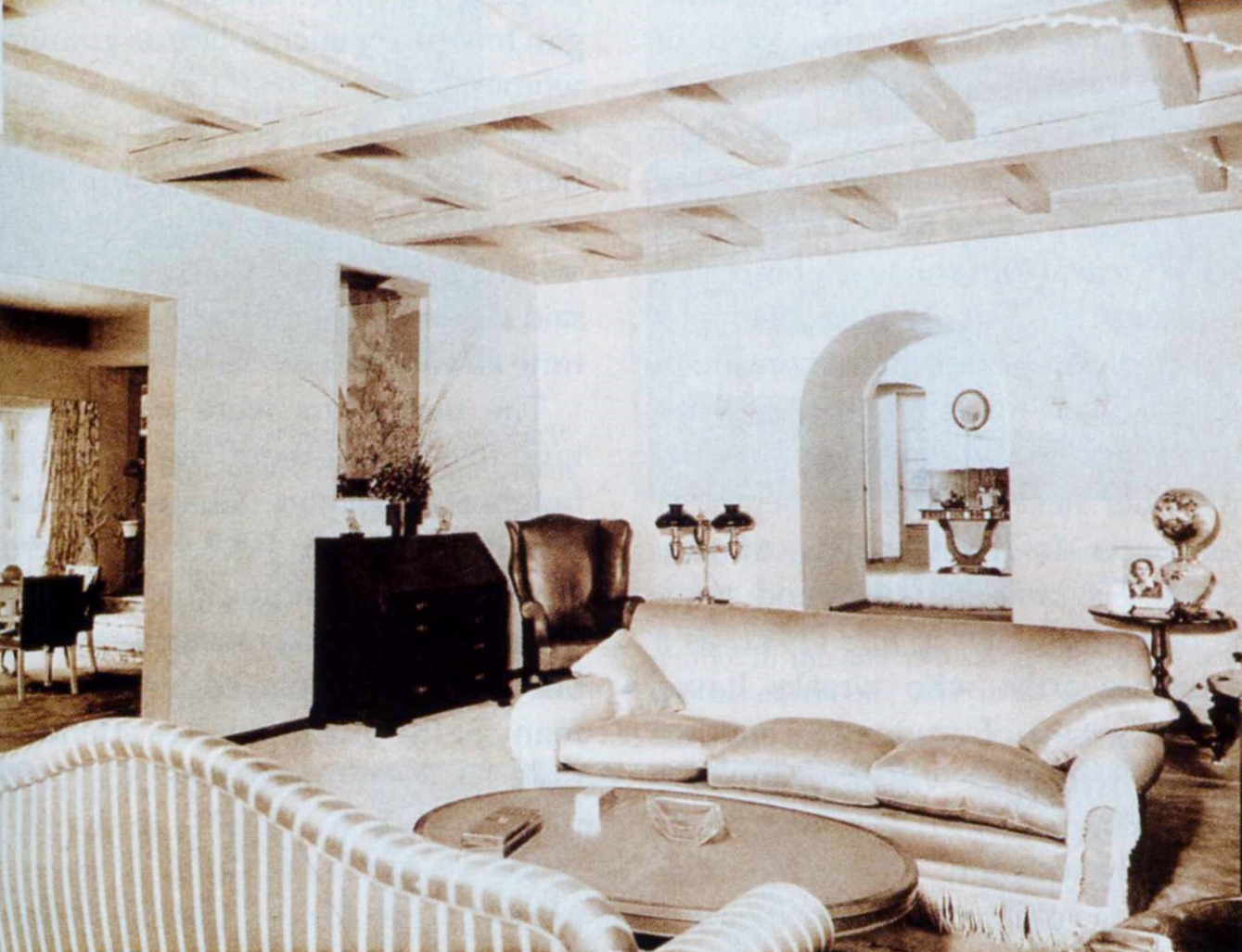A crossbeam wood ceiling, deep archways and simple furnishings lent an air of solidity to the Beverly Hills living room, which was featured in “Architectural Digest” in the 1940s.