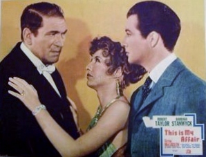 This Is My Affair – 1937 – starring Robert Taylor & Barbara Stanwyck. A rather deceptive title capitalizing on their real-life romance. He plays a naval officer working undercover on orders from President McKinley to infiltrate a gang of highly successful bank robbers, one of whom is Stanwyck’s stepbrother (Brian Donlevy), another who considers her his girlfriend (the always over-the-top Victor McLaglen). Entertaining &, on first viewing, suspenseful historical fiction.