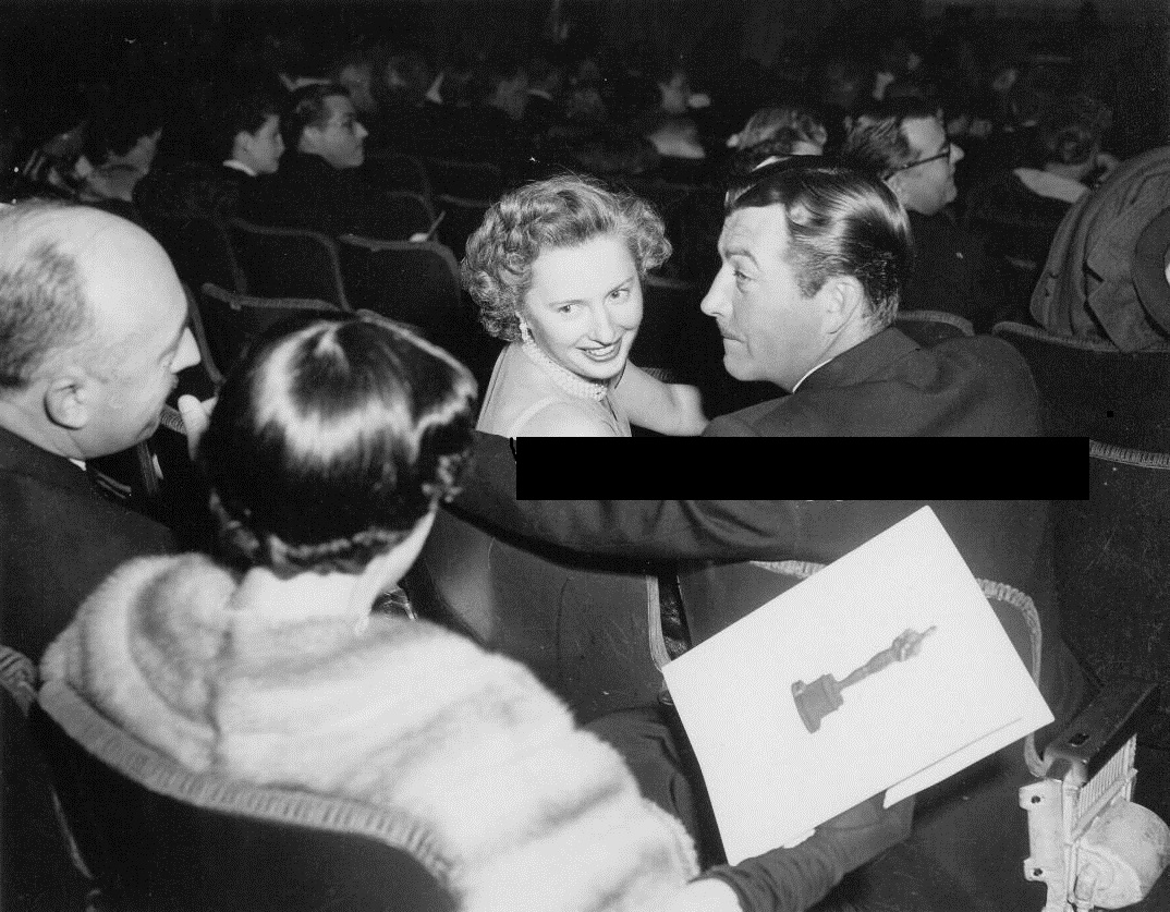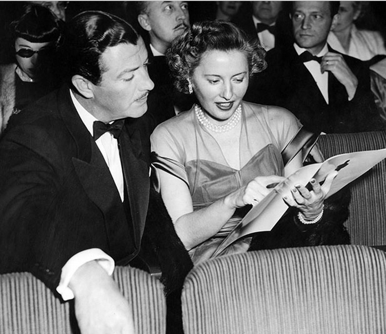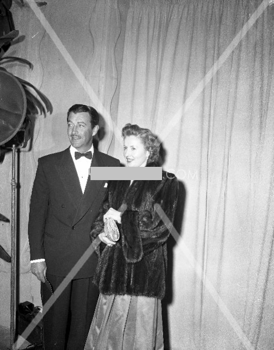 The photos below were taken before the ceremony and Ms.Stanwyck looks nervous and excited. She was accompanied, of course, by her husband Robert Taylor. Barbara Stanwyck looked glamorous and every inch the movie star in her elegant gown and fur jacket while Mr. Taylor looked sophisticated and suave in his tuxedo.