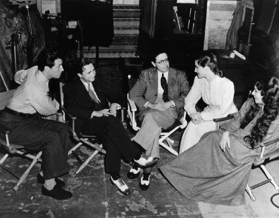 Left to right: Chill Wills, Taylor, Shearer; Cukor and Taylor; Taylor and Shearer