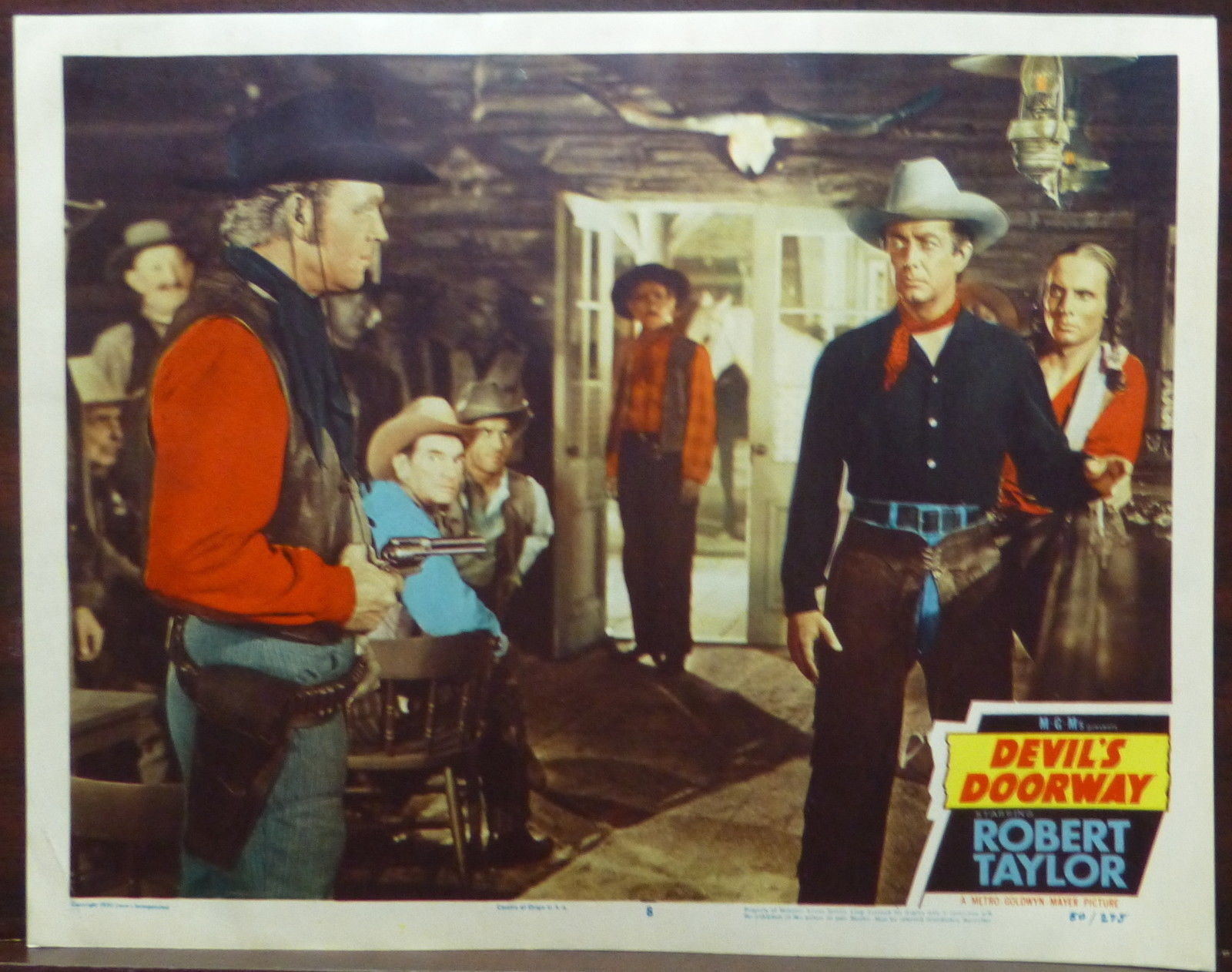 Devil’s Doorway is an indescribably sad movie. It is directed by Anthony Mann and photographed in Caravaggesque black and white by cinematographer John Alton. The film is a story about war, peace, love and bigotry. At the end of the Civil War, a veteran of the Union Army, Lance Poole, returns to his home in Wyoming. Poole, (Robert Taylor), a Shoshone Indian, has had his fill of fighting and simply wants to live in peace on his family’s ancestral acres.