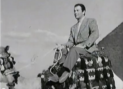 From left: Robert Taylor horsing around with a donkey; looking insecure on a camel.