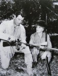 Left to right: Newlyweds Ursula and Robert Taylor; getting bullwhip instruction from Abel Fernandez(?); with co-star Eleanor Parker.