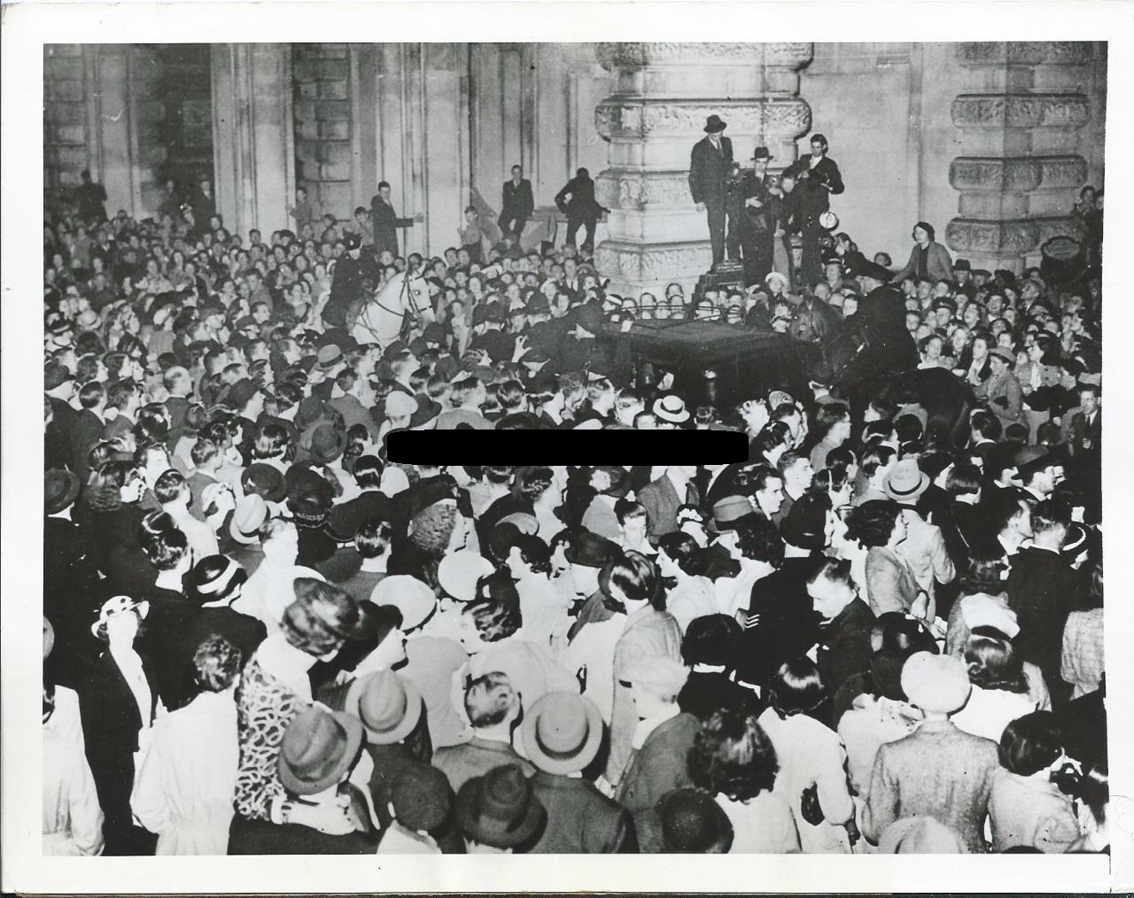 “That question has a familiar ring. I’ll say this much, though The lady’s name is pronounced ‘Teece.’ You muffed it. I’ll also say we are keeping company. And I don’t many mind telling you she was with me yesterday when I was buying some Adler silverware. I figure it’s time I began keeping a hope chest. Furthermore, I instructed that the monogram “T” be put on the silverware. I’ll even go this far: I’m house hunting, sometimes as many as three or four houses a day and sometimes Miss Thiess is with me. You may now conjecture your head off.”