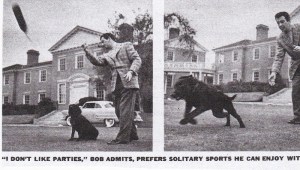 “Bob,” a friend has said, “could very well have an inferiority complex. He has it under check, naturally, but did you ever see a normal personality quite so contained as his? This guy never lets go. As a kid, he was pretty close to being a male beauty and this may have affected his relations with other youngsters and set the framework for what he was going to be later. No one can say what he might have been if he hadn’t looked the way he does, but my guess is a solid Rotarian type, who’d never get to Hollywood except for an American Legion Convention. Or a cello player who liked to ride horseback or fly a rented plane weekends. He was pretty fair on the cello. But the face came along and crossed him up. Naturally that’s pretty fair crossing. Big money, fame, the chance to live the way he wants