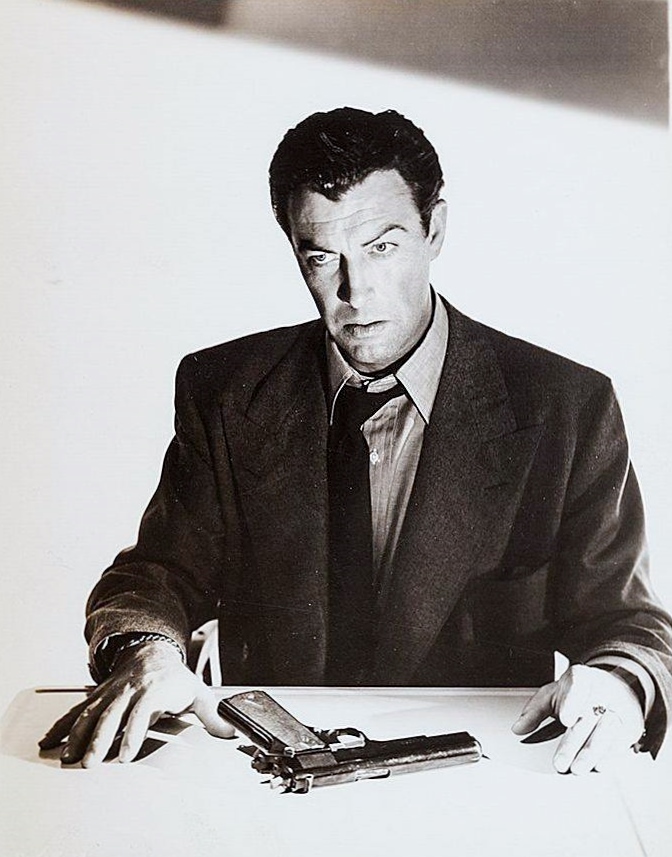 Hunted…and a dangerous figure is Robert Taylor, as a supposed homicidal manic who escapes from a mental institution, in MGM’s High Wall, an exciting mystery drama.