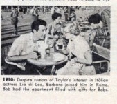 1950 Despite rumors of Taylor’s interest in Italian actress Lia di Leo, Barbara joined him in Rome. Bob had the apartment filled with gifts for Babs. [here, in Venice.]