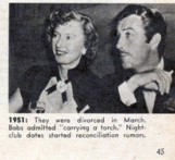 1951 They were divorced in March. Bob admitted “carrying a torch.” Night club dates started reconciliation rumors.