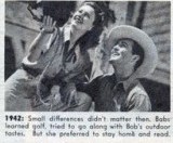1942 Small differences didn’t matter then. Babs learned golf, tried to go along with Bob’s outdoor tastes. But she preferred to stay at home and read.