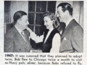 1947 It was rumored that they planned to adopt twins. Bob flew to Chicago twice to visit ex-Navy pals, alone, because Babs refused to fly.