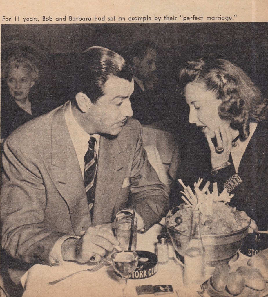 “My own analysis is that Bob and Barbara got tired of each other. It’s as simple as that. If they enjoyed each other’s -hobbies, it might’ve different. But as grown-up folks, each went his own way. Barbara has a 17-year-old son, Dion, by Frank Fay. Maybe if she and Bob had adopted some kids it would have been different.