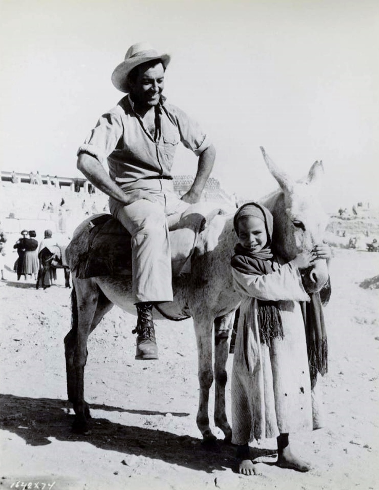 Famous dancer & star. SG, celebrated oriental dancer, is pictured w. RT on set of MGM’s VotK in Egypt. She dances in film while T has romantic w. EP. It is Miss G’s first appearance in a Hollywood production.
