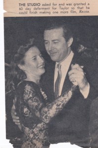 Tay Garnett, director, “(Taylor) was one of the world’s great gentlemen….He was serious minded, hard working and keen. In spite of his astounding good looks, he was determined to be a fine actor, and not merely a star.” (L.J. Quirk, The Films of Robert Taylor, 1975, p. 102)
