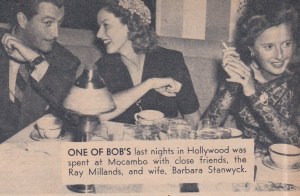 Ava Gardner, actress. Gardner recalled Bob as a “warm, generous, intelligent human being.” Ava Gardner, Love Is Nothing. (Tranberg)