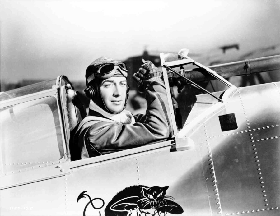 Actor Robert Taylor Posing by Airplane from Movie Scene