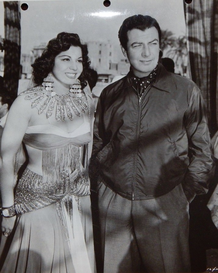 Famous dancer & star. SG, celebrated oriental dancer, is pictured w. RT on set of MGM’s VotK in Egypt. She dances in film while T has romantic w. EP. It is Miss G’s first appearance in a Hollywood production.